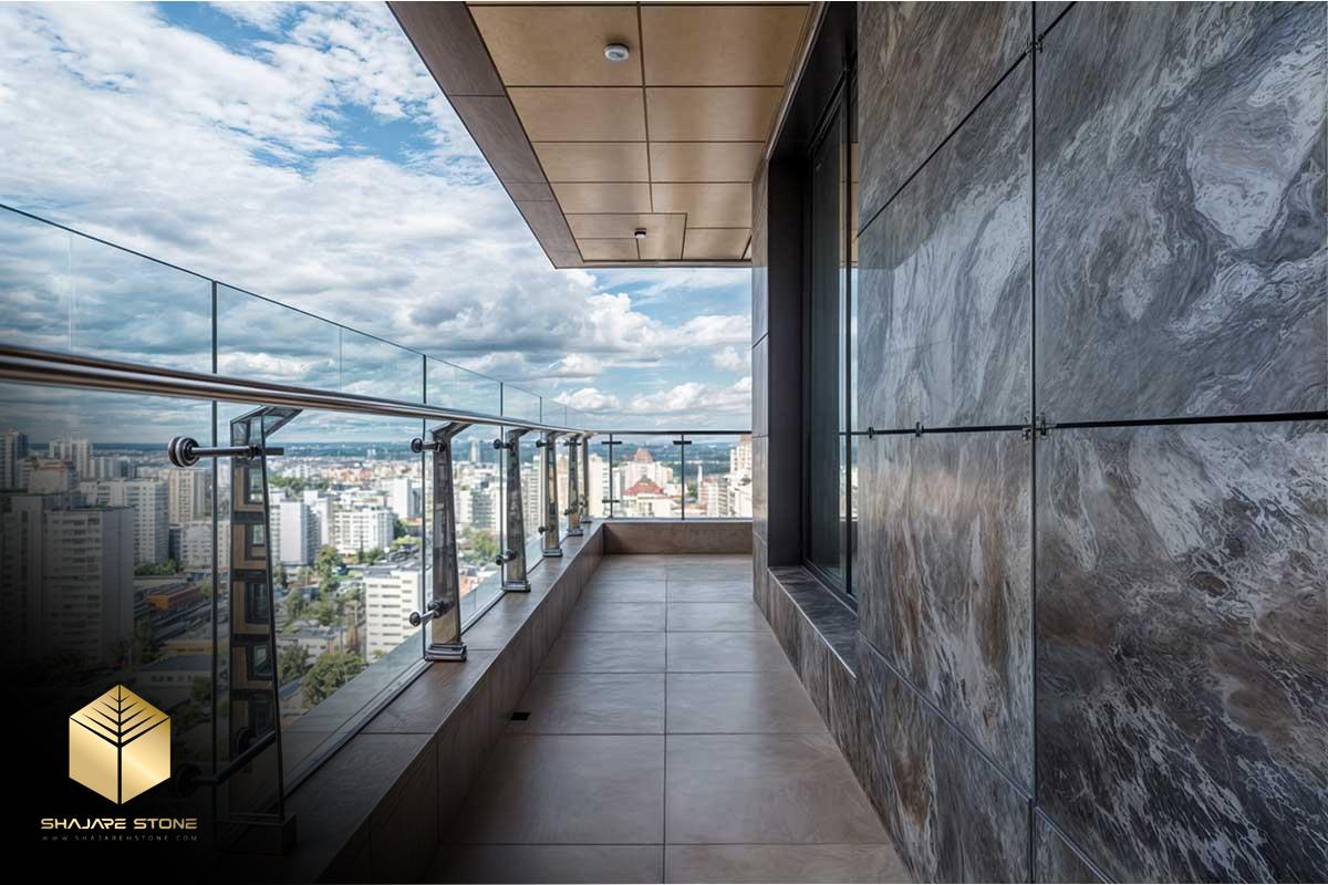 سنگ مرمر به دلیل درخشش خاص خود، گزینهای لوکس و شیک برای تراس است، اما در برابر شرایط جوی سخت چندان مقاوم نیست.